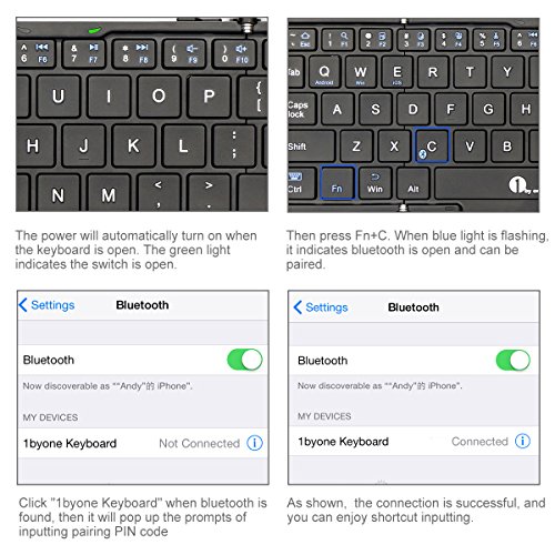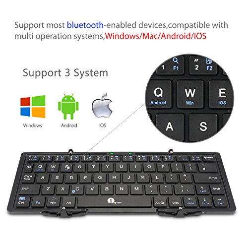 1byone Foldable Bluetooth Keyboard, Portable Bluetooth Keyboard for iOS, Android, Windows, PC, Tablets and Smartphone, Black