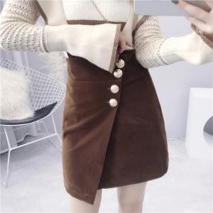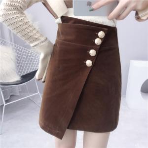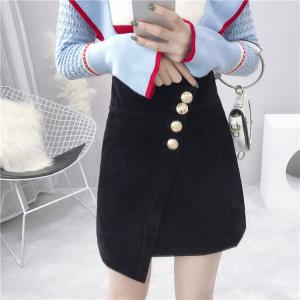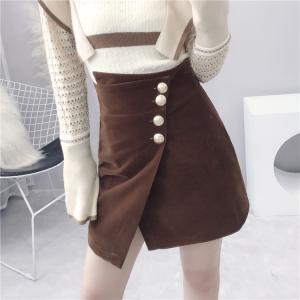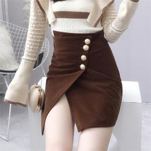 ハイウエストスカート フロントボタン 巻きスカート風 レトロ スリット 大人カラー 大人カジュアル ミニスカート