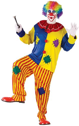 -. Binding : Apparel -. Brand : Fun World -. ClothingSize : One Size Fits Most -. Color : Multicoloured -. Department : mens -. Feature : It's showtime, our light weight, colorful, 2piece clown costume will be the hit of the party / Includes mullticolor print shirt,matching pants,and collar / Optional accessories: a clown wig, make up, clown shoes. -. Genre : Classic -. IsAdultProduct : 0 -. Label : FunWorld -. Manufacturer : FunWorld -. Model : 1304442 -. MPN : FW130444 -. PackageQuantity : 1 -. PartNumber : FW130444 -. ProductGroup : Apparel -. ProductTypeName : ADULT_COSTUME -. Publisher : FunWorld -. Size : One Size Fits Most -. Studio : FunWorld -. Title : Fun World Men's Big Top Clown Costume