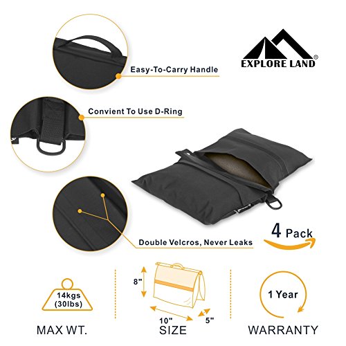 Studio : Explore Land Publisher : Explore Land Binding : Electronics Product Description About Explore Land Photography Sand Bag 1. Material: Heavy Duty 600D polyester 2. Dual Dimension: 11 x 8.5 inch, fill up to 30 lb of sand. 3. Double velcro closure keep bag secure, easier open and close when filled with sand than zipper. 4. Compatible with boom stand, arm bar, light stand, tripod, C stand. A perfect counterbalance for safety and smooth movement. 5. Sand will not leak with durable stitching and velcro. 6. Sand not included. 7. 1 years warranty.