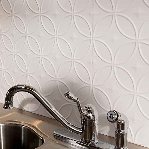 Fasade Easy Installation Rings Gloss White Backsplash Panel for Kitchen and Bathrooms (18" x 24" Panel)