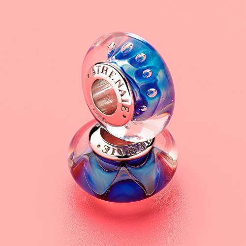 ATHENAIE Genuine Murano Glass 925 Silver Core Ocean Secret Charm Bead Fit All European Bracelets Color Blue