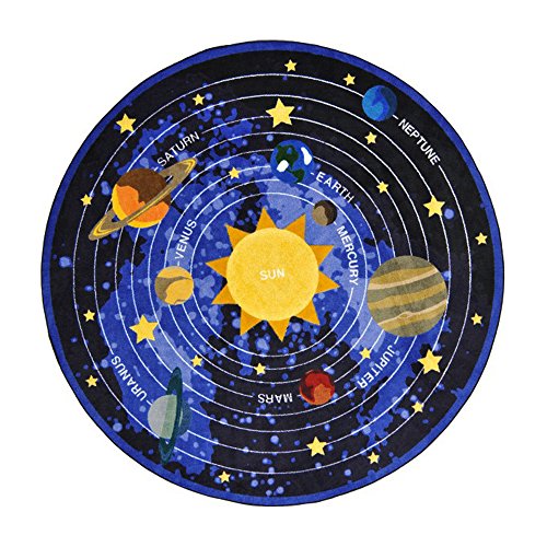 Joy Carpets Kid Essentials Geography & Environment Round Cosmic Wonders Rug, Black, 5'4"