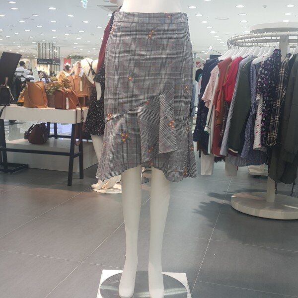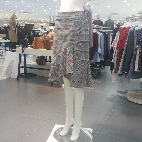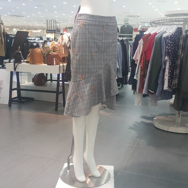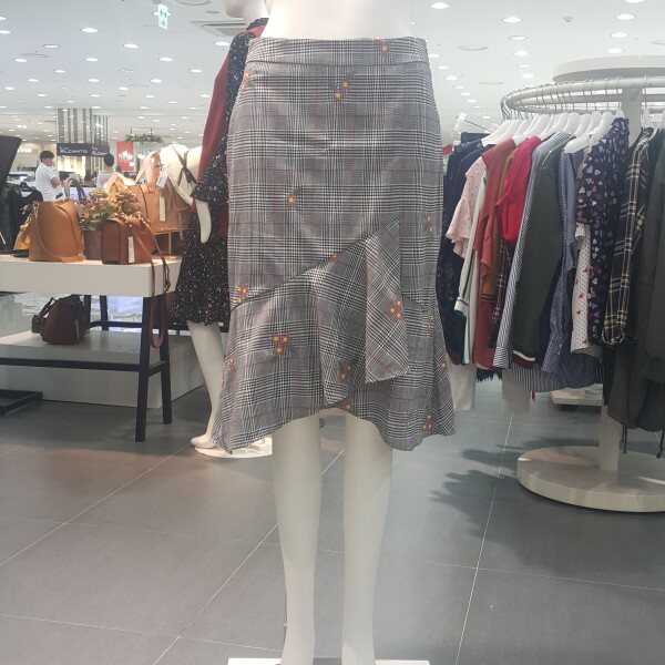전체체크패턴에 꽃자수가포인트되는 인어라인스커트 입니다