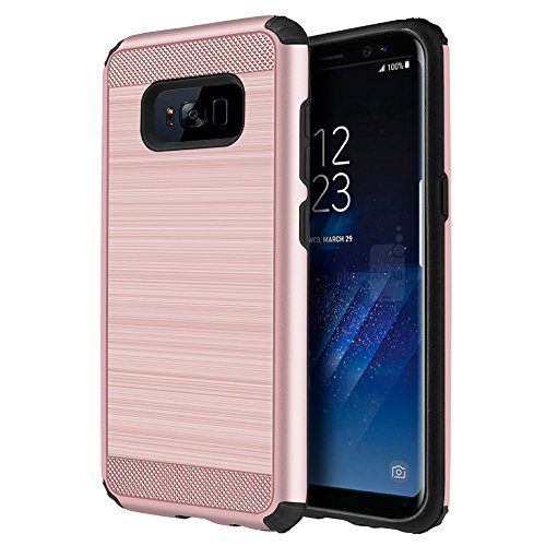 -. Title : Samsung Galaxy S8 Plus Case - Shockproof Dual Layer Hybrid [Brushed Metal Textured] Anti-Slip Grip Red Polycarbonate Inner TPU Gel Cover and Atom LED