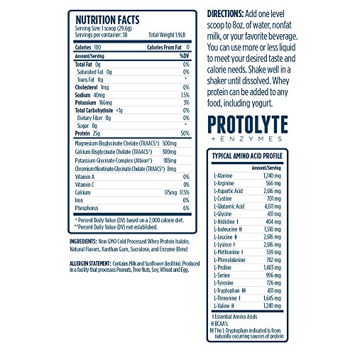 Studio : VMI Publisher : VMI Binding : Health and Beauty Product Description The world's first Cold Processed and Filtered Whey Protein Isolate with both added Electrolytes and Enzymes for recovery and digestion. Protolyte is for everyone from the everyday fitness enthusiast to the hardcore athlete and bodybuilder. It's suited perfectly for a valuble post workout meal or a balanced weight management plan. 0