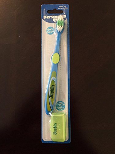 Personally Me Kids Soft Toothbrush Childrens Personalized Name "JUSTIN" Blue & Green