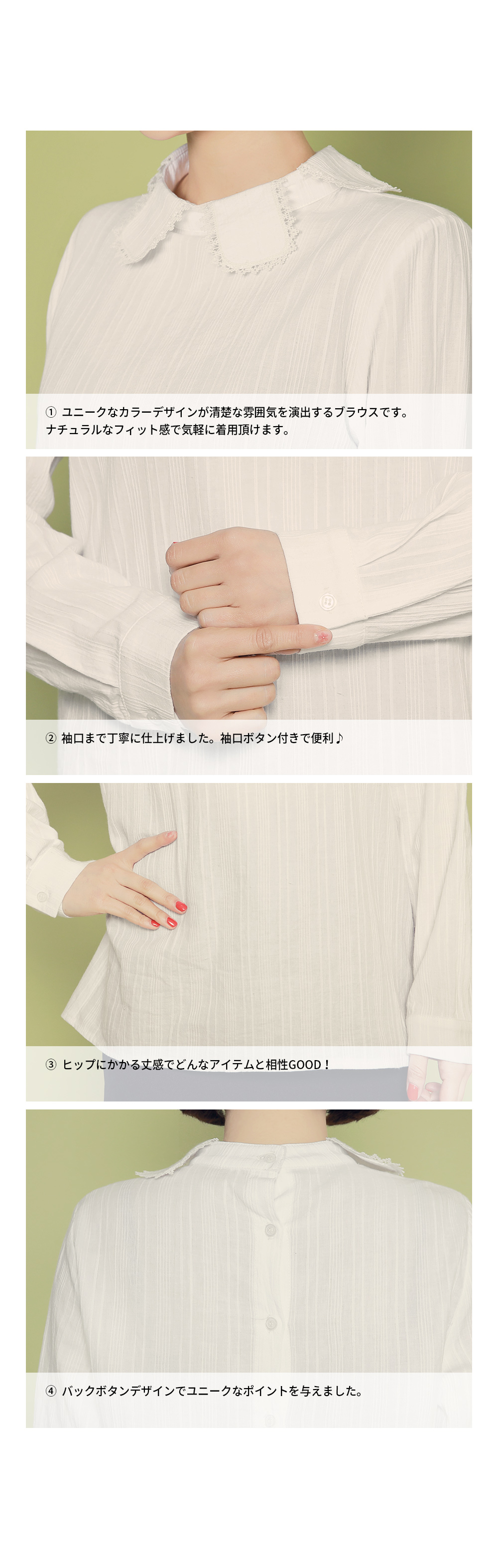 ラブリーなムードを楽しめるブラウスです。肌触りの良い素材で着心地抜群♡程よい透け感で女性らしさをUPしてくれます♡ユニークなカラーラインにレースをプラスし、ラブリーさをプラスしました。バックファスナーで脱ぎ着も楽ちん♬デイリーコーデにはもちろん、フォーマルなシーンにも楽しめるアイテムです。