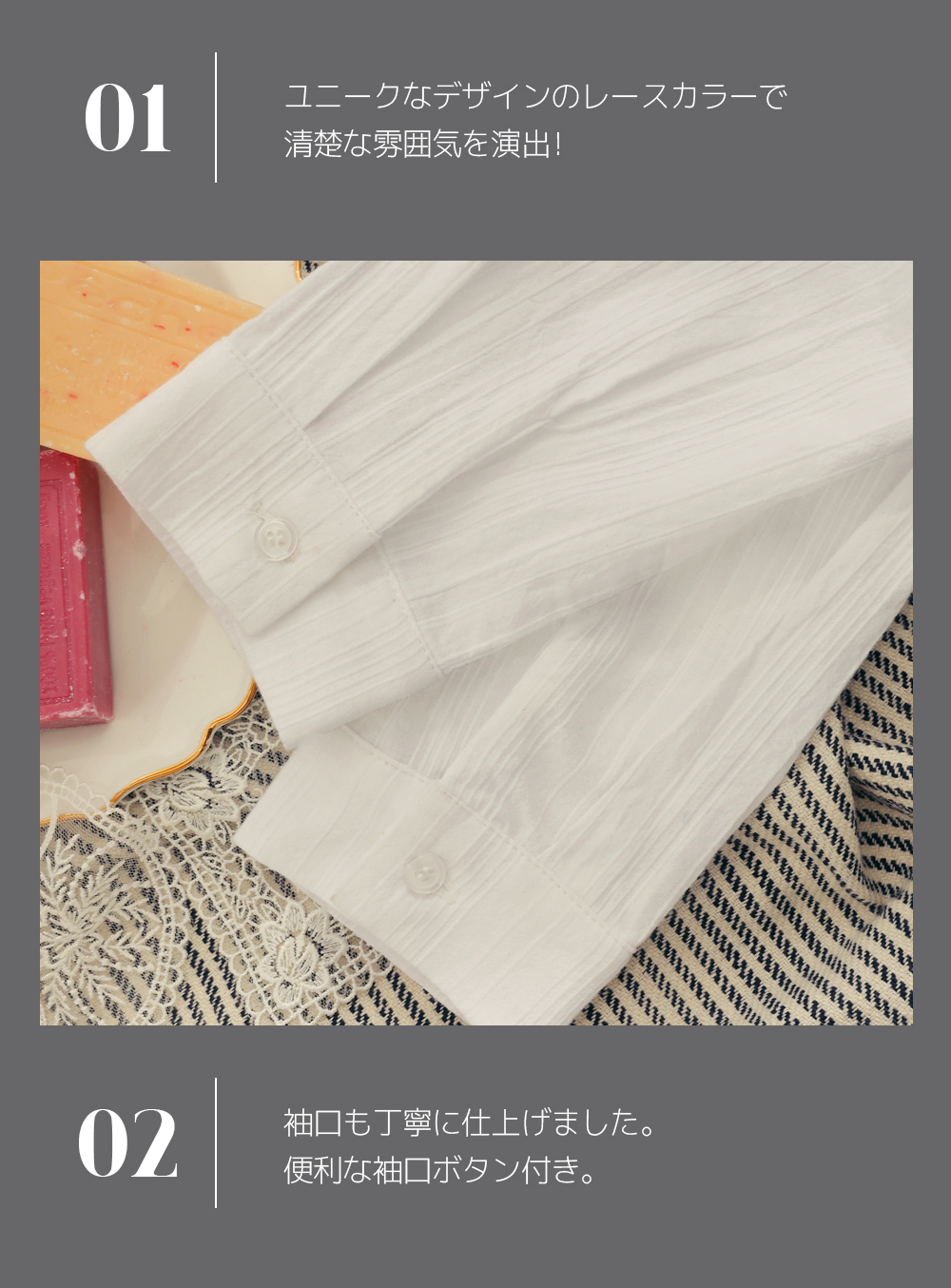 | 詳細情報 | サイズ-ジャスト/伸縮性-なし/厚み-普通/裏地-なし/透け感-あり |