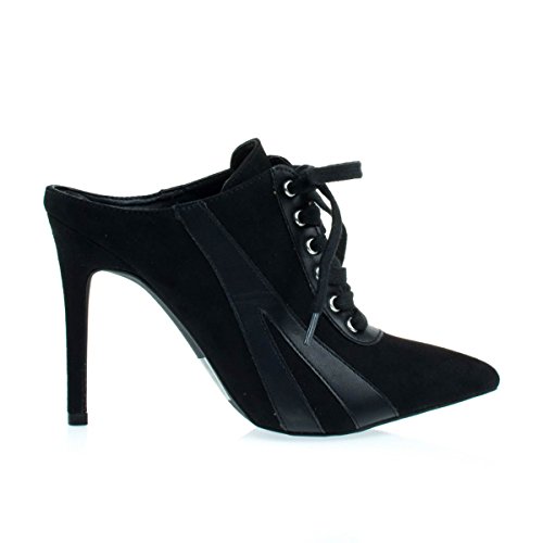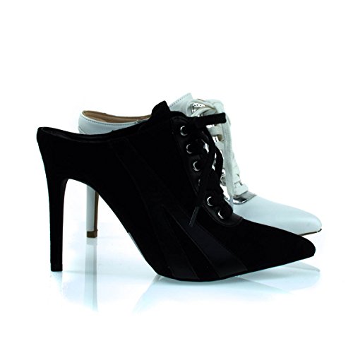 Binding : Apparel Product Description About This Shoes :Slip into these high heel sneaker mules with sneaker upper, lace up closure, pointed toe, stiletto heel, opened back and slip ons. Brand - Wild Diva Colors Available: Black, White Occasion: Clubwear Shoe Type: Heels - Close Toe Shoe Style: Mules Inner Lining: synthetic Heel Height In Inches - 4.25 Heel Style - Stiletto Toe Style - pointed-toe Platform Height In Inches - 0.25 Shaft Height In Inches - n/a Circumference Opening - n/a Strap Type - Sole - manmade All Man Made Material unless otherwise stated. Computer/Phone/Table monitors might show color differently because of its quality or calibration, we suggest you look at the photo in at least 3 monitors if you need exact color match of your shoes. 0