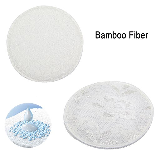 -. Feature : We used bamboo fiber an organic, more absorbent and hypoallergenic material to create the breastfeeding pads. And it is better for the environment / We designed the breastfeeding pads with waterproof layers and reusable after each breast feeding. We made them machine washable and they will get much softer after each wash / The bamboo fiber breastfeeding pads are more absorbent, and provide an excellent leak protection thanks to the waterproof layers. With our breastfeeding pads you will not be embarrassed of any leak / We used bamboo fibers to create the best breastfeeding pads but also because it is a really soft material and perfect for the delicate breast skin and nipples / You will be able to use the breastfeeding pads with or without your nipple creams. Pack of 12 white breastfeeding pads, 6 pairs