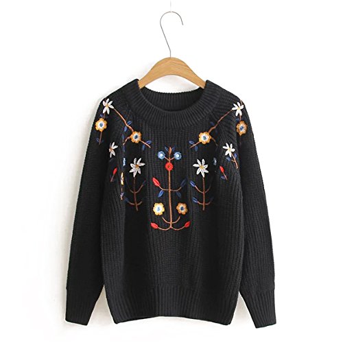 소와 공예사 니트 스웨터 레이디스 크루 넥 니트 추동 넉넉하게 어른 여성꽃 바탕이 두꺼운 것 긴 소매 니트 톱스 패션
