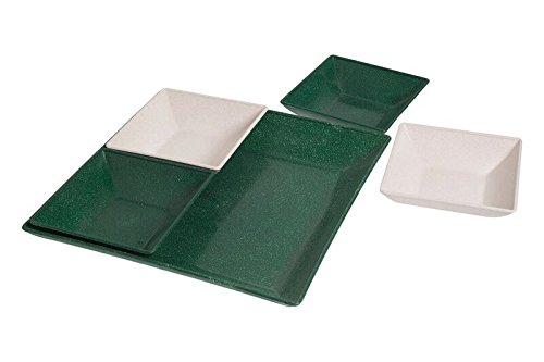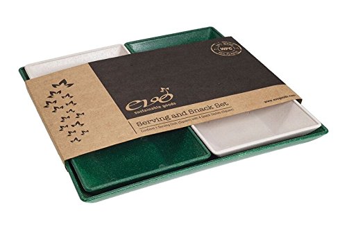 Studio : EVO Sustainable Goods Publisher : EVO Sustainable Goods Binding : Kitchen Product Description These vibrant wpc (wood plastic composite) serving dishes are a fun and way to serve snacks to friends and family. Contains one lightweight large snack tray, perfect for appetizers of all kinds, with 4 small snack dishes that fit perfectly inside, perfect for dipping sauces and small treats. Working in harmony or independently, this set is a must have for any host. As always, these BPA free products are dishwasher and microwave safe. 0