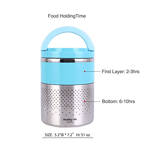 √ Freezable&dishwasher safe: Leakproof sturdy food grade 304 anti-rust stainless steel container with airtight lid. For cold, hot, dry, and liquid food. Food grade PP outer shell is eco-friendly, non-toxic! 2 layers design, 52 OZ big enough for store daily food.