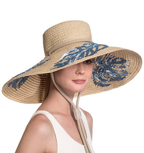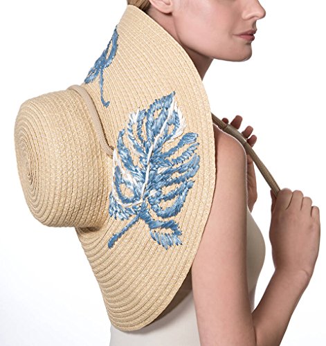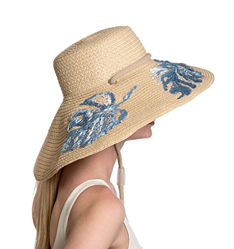 Binding : Apparel Product Description Dramatic sun hat of Squishee? with hand embroidered leaf motif of synthetic raffia. Rope chin strap secures the hat when it's windy and also allows it to hang down your back. Signature logo rivet is discretely placed at the back. Lightweight and packable. Blocks 95% UVA/UVB rays. Independent testing in accordance with AATCC (American Association of Textile Chemists and Colorists) test methods have determined this product's effectiveness for blocking ultraviolet radiation as well as UVA/UVB radiation. This product was awarded the highest rating of 50 UPF by independent testing. To learn more about AATCC testing, go to www.aatcc.org. Due to the weave of this item, tiny pinhole areas may provide less than 50 UPF. 0