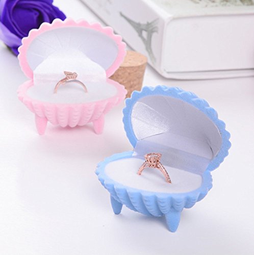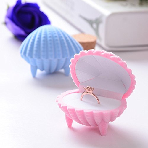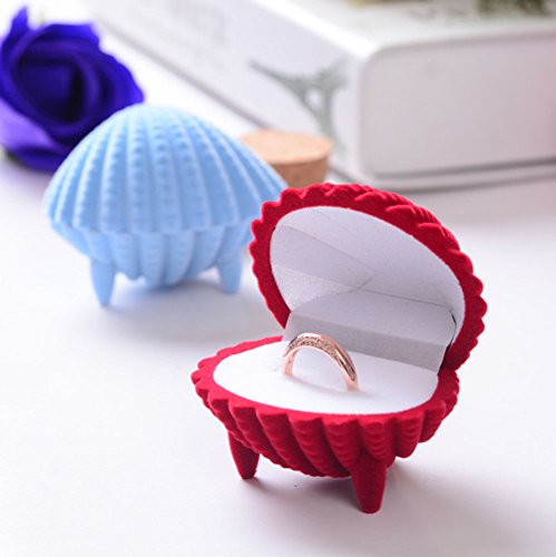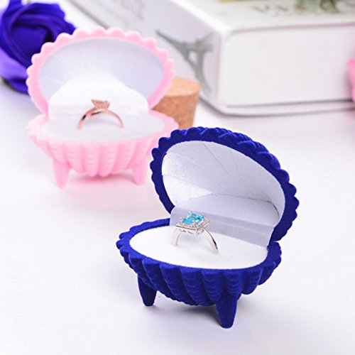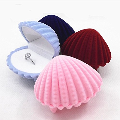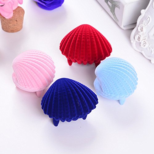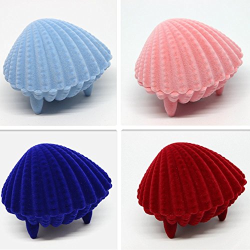 XICHEN® 4 PCS Shell jewelry boxes Flocked Ring Gift Box Jewelry Display, Red, pink, navy blue, light blue