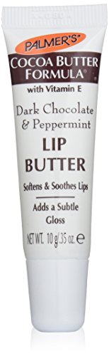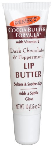 ReleaseDate : 2008-09-17 Studio : Palmer's Publisher : Palmer's Binding : Health and Beauty Product Description Palmers cocoa butter formula dark chocolate peppermint lip butter A special formulation of Palmer's 100% pure Cocoa Butter, Vitamin E and Petrolatum provides ultra-moisturization and a hint of gloss with the delicious scent of dark chocolate and peppermint. This one-of-a-kind lip butter gives you a slight tingle so you know it is working to combats even the driest lips. 0