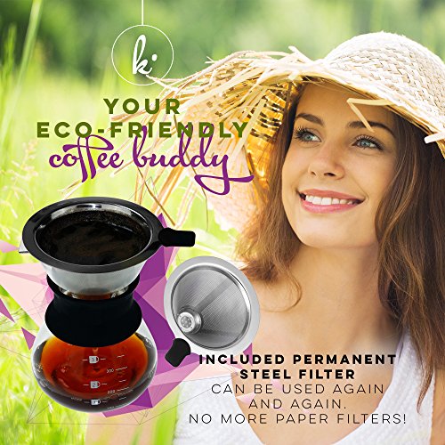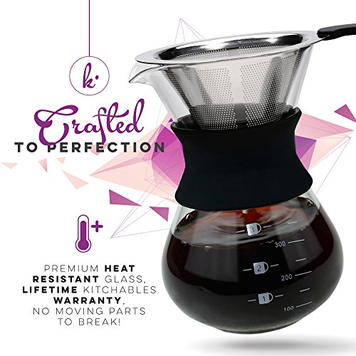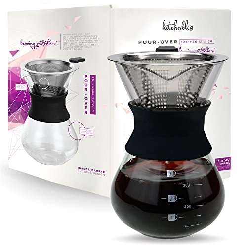 -. Brand : Kitchables -. Color : Glass -. EAN : 0014567115466 -. Feature : CRAFTED TO PERFECTION - Premium heat resistant borosilicate glass, no moving parts that could break, and with our lifetime Kitchables warranty! / THE PRETTIEST WAY TO MAKE COFFEE - Clean & minimalist design fit for any home, office or kitchen setting / CLEAN EFFORTLESSLY - Easy to maintain and 100% dishwasher safe for convenient cleanups that save you valuable time / YOUR ECO-FRIENDLY MONEY-SAVING COFFEE MAKER - Included permanent stainless steel dripper can be used again and again. No paper filter or residues to taint your coffee's inherent flavor - or to rob your coffee of its essential oils and nutrients / TRUSTED BY COFFEE LOVERS WORLDWIDE. Buying from Kitchables gets you a lifetime 100% manufacturer's warranty, no kidding. If you're not satisfied, you get your money back -. Label : Kitchables -. Manufacturer : Kitchables -. ProductGroup : Kitchen -. ProductTypeName : KITCHEN -. Publisher : Kitchables -. Studio : Kitchables -. Title : Pour Over Manual Hand Drip Coffee Maker - Glass Carafe Coffeemaker Pot with Stainless Steel Permanent Filter (3 Cup) -. UPC : 014567115466