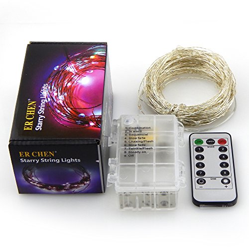 ER CHEN Remote Battery Operated Micro LED String Lights,200 LED on 66 Ft Long 8 Lighting Mode Ultra Thin Silver String Wire with 13 Key Wireless Handheld Remote Control(Warm White)