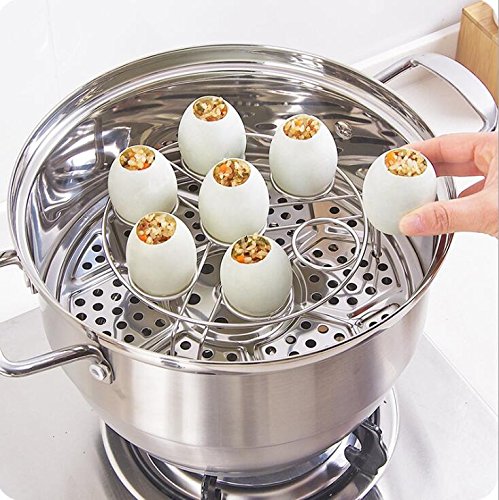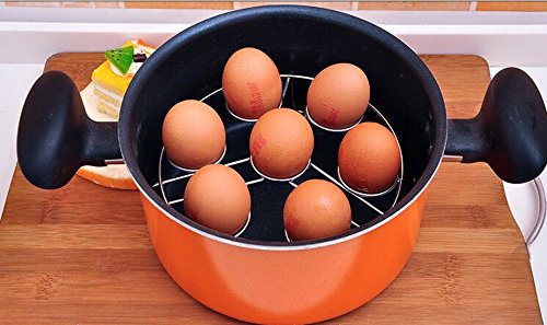 Why we?need a steamer rack? ---- A better nutritious way to enjoy?ourdaily life. Cooks your food with steamer rack can retains more vitamins, flavors, nutrients and texture than boiling, microwaving and frying method. ---- If you have a baby, the steamer rack is perfect for making fresh and nutritious baby foods, such as steam custards, vegetables and fruits. ? Perfect for cooking: Eggs Meat and chicken Fruit and Vegetables Seafood (i.e fish, mussels,clams,crab) Desserts Meat and chicken And so on..... ? How to make hard boiled eggs in the instant pot or pressure cooker? 1. Put an inch or more of water to the bottom of Instant Pot and Pressure Cooker. 2.Add eggs on rack. 3. Cooking on steam setting for 5 or 7 minutes. ? Material: Food grade 304 stainless steel?(not 201 stainless steel) Many steamed egg holder is made of 201 stainless steel, we need to identify clearly before buying.304 more than 201 stainless steel stainless steel safety and health, our material is 304 stainless steel !!! ? Size:2 Pack 1. 6.75 x 1.8inches steamer egg rack 2. 6.75 x 3.1inches steamer egg rack The total weight : 0.55lb ? If you have any questions or concerns, please don't hesitate to contact us.