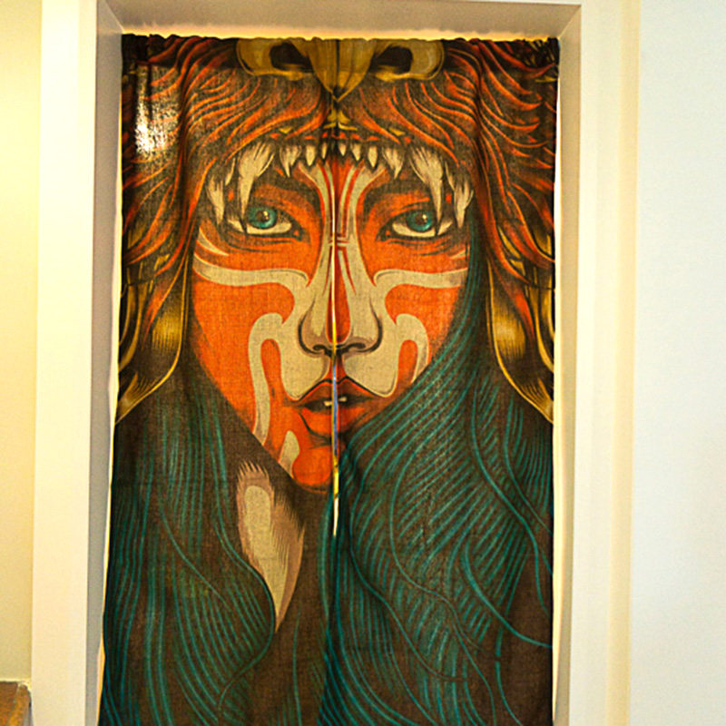 另类棉麻日式半门帘 创意手绘隔断帘子房门卧室布艺漫画卡通挂帘