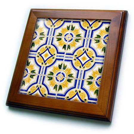 3D Rose Portugal. Aveiro Yellow Tilework-Azulejo-Historic District Framed Tile, 8" x 8", Blue