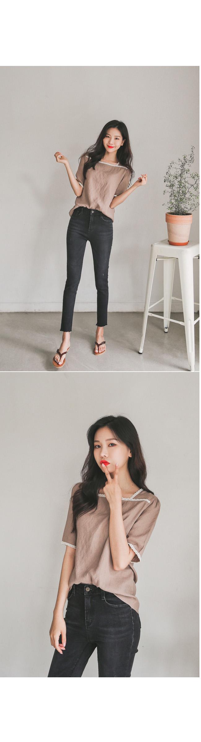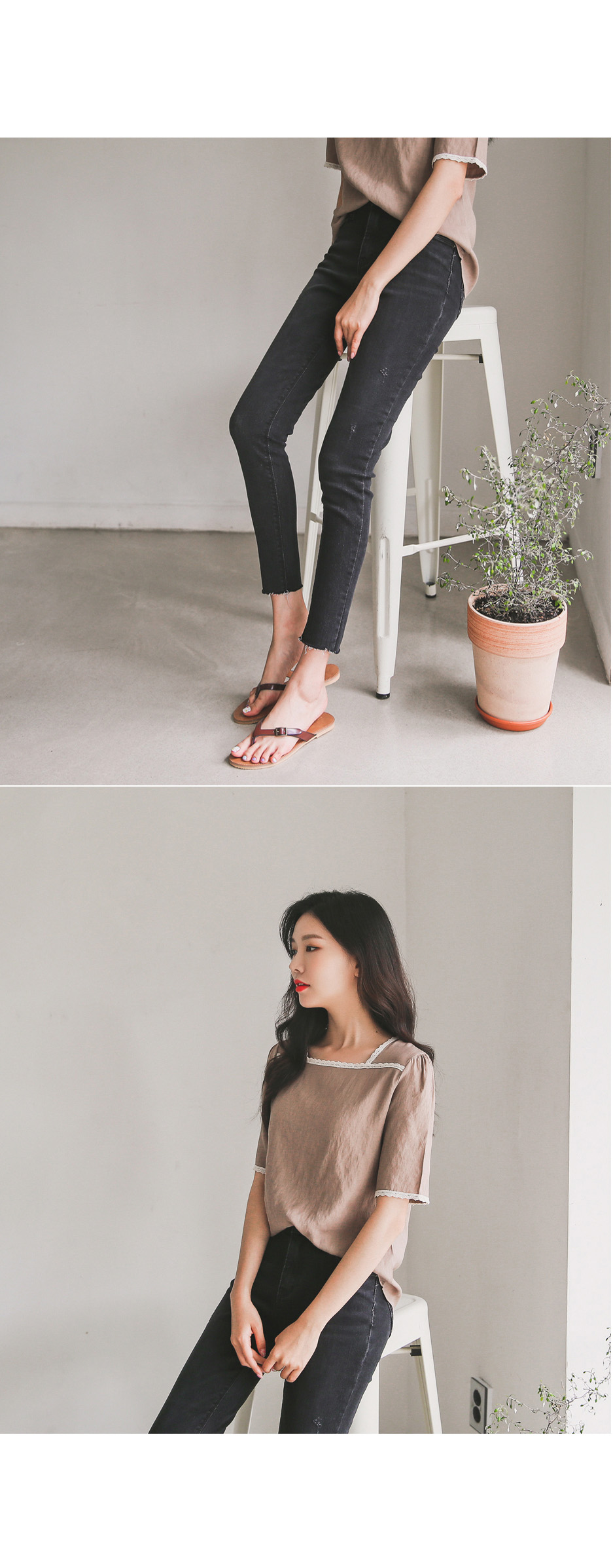 크롭한 기장감으로 전체적으로 하체 라인을 날씬하게 표현되어저 좋구요,