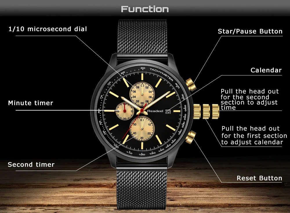 Feature:Water Resistant,Stop Watch,Shock Resistant,Chronograph,Luminous Hands