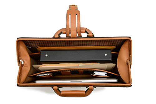 -. Feature : a classic, handcrafted full grain leather briefcase,handsome silhouette, / patented Hinge-Loc technology, Full grain American leather, / Patented Hinge-Loc technology that allows the top frame to stay open, / cell phone, iPad, and laptop power charger, strap key hook and deluxe lage tag, / Slim exterior pocket for literature or files, Handcrafted ,