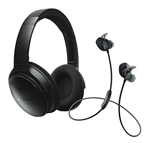 Bose QuietComfort 35 Noise Cancelling Over-ear (Black) & SoundSport In-ear (Black) Wireless Bluetooth Headphone Bundle