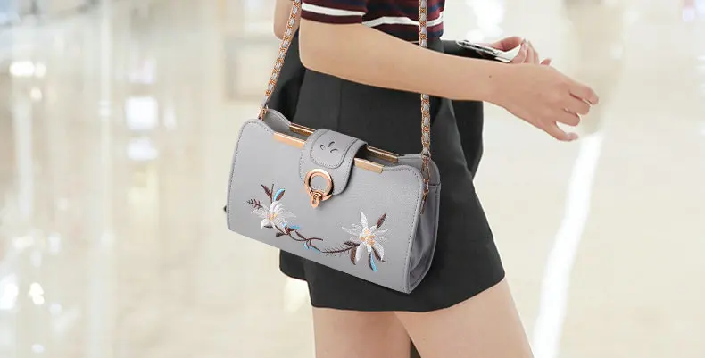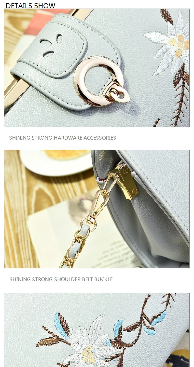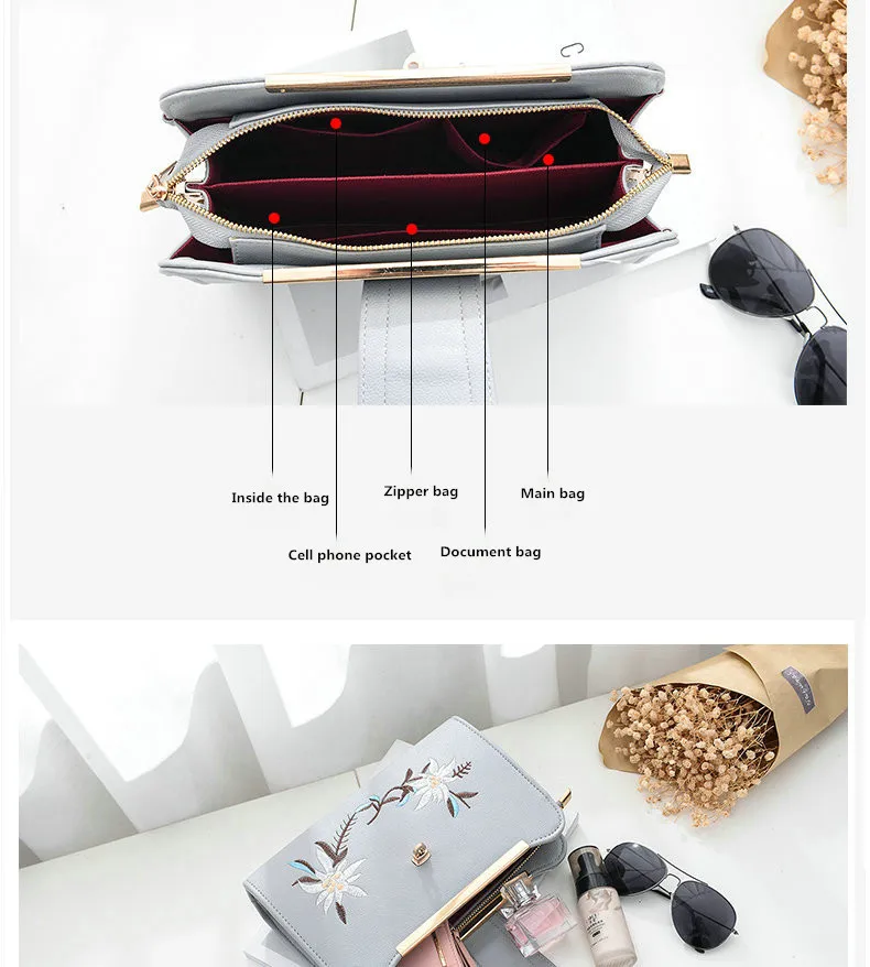 高級女性革ハンドバッグ女性メッセンジャーバッグ女性レザーショルダーバッグ女性の刺繍花ハンドバッグ甘いトートバッグ