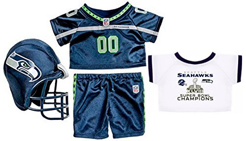 -. Feature : Build a Bear Seattle Seahawks Uniform Super Bowl XLVIII Champions / 4 Piece NFL Football Teddy Size Outfit / Complete with Jersey, Pants, Soft Helmet and T-Shirt Ringer Tee / Official Build a Bear Workshop Merchandise / Fantastic Collectible Memorabilia - Perfect Gift Idea for your Football Fan
