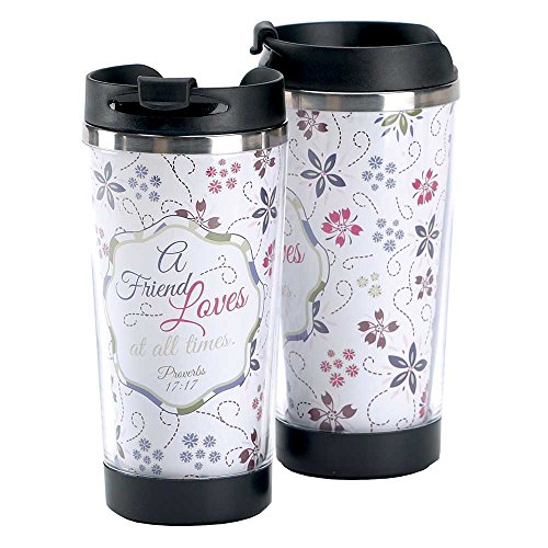 Friend Loves All Times Proverbs 17:17 9.5 Oz. Stainless Steel Travel Mug with Black Snap Lid