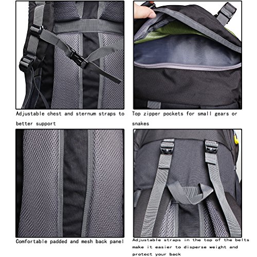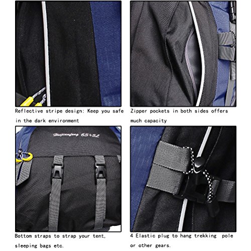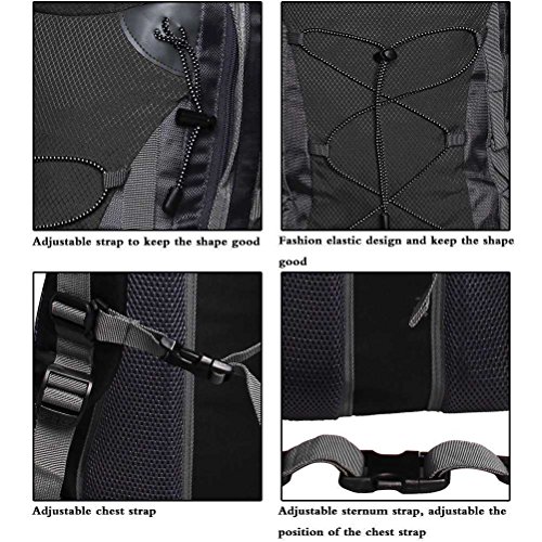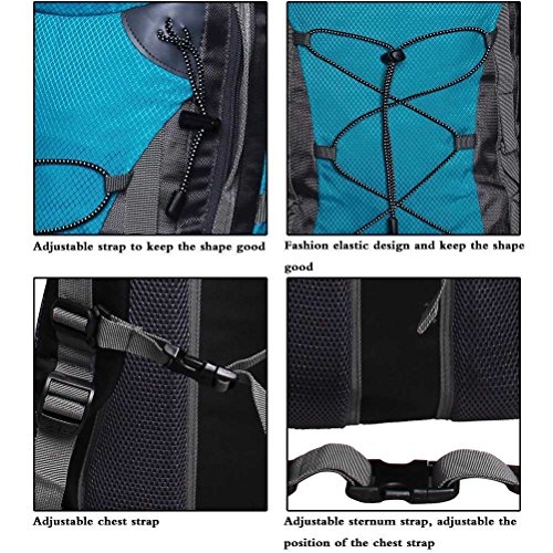 Features: 1. Fashionable Design 2. Water-Resisitant Nylon Material 3. Elastic Plug Design For Alpenstock Clasp, Other Necessities 4. Large Capacity With Separate Room For Your Ipad, Pc 5. High Quality Buckle 6. Waterproof Rain Cover in the Bottom Pocket 7. Attachment Strap for Haning Trekking Pole, Moisture-proof Mat, Tent or others you need 8. Two Sides Mesh Pocket For Water Bottle Or Other Accessories 9. Extra Pockets Expansion 10. Padded and Breathable Back Panel