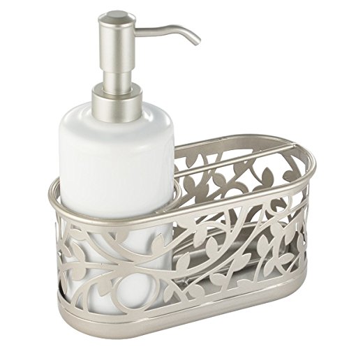 mDesign Kitchen Sink Soap Dispenser Pump and Sponge Caddy Organizer - White/Satin
