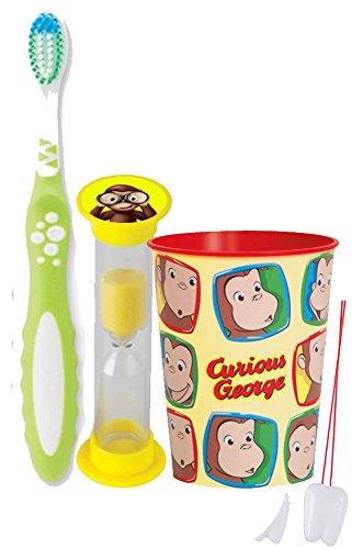 -. Feature : Turn something your kids have to do into something they want to do Curious George & Friends...Because when brushing is fun, it gets done! / (1) Soft Manual Youth Toothbrush (Assorted Colors) / (1) Curious George 16 Oz Plastic Mouthwash Rinse Cup! Doubles As Toothbrush Holder! / (1) Dentist Recommended 2 Minute Curious George Themed Brushing Timer (Assorted Styles) / Plus Bonus "Remember to Brush" Visual Aid Tooth Saver Necklace. Hang it in their bathroom or by their bed so they remember to keep their chompers sparkly fresh. You could also use these tooth charms to save one of your child's baby teeth.