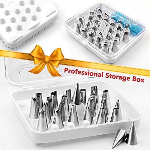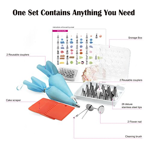 Weetiee 38-Piece Cake Decorating Kit with 26 Thickened Seamless Icing Tips, 2 Flower Nails, 2 Silicone Pastry Bags, 2 Twist Couplers,1 Cleaning Brush, 3 Orange Scrapers and Accessories (Orange)