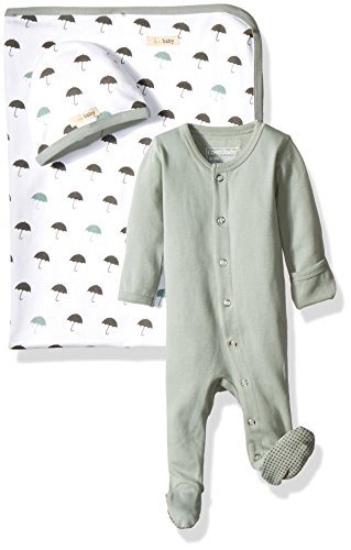 Organic cotton blanket, hat, and footed sleeper bundle/gift set