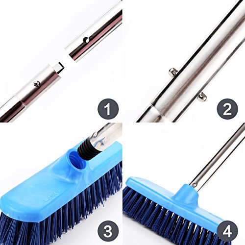 Studio : YCUTE Publisher : YCUTE Product Description Feature: Upgraded long handle scrub brush, it's easy to assemble, lightweight to hold. Due to removable handle, it's convenient for you to save it. The brush can be used outdoors or indoors. It gets used every day or week to sweep the porches, the concrete walkway, the garage. The bristles won't worn or falling out easily. Specification: Usage: Household Cleaning Size: Handle Length: 46inches Broom Head: 7.4x2.08x2.12 inches Weight: 0.93 lb Packaging: 1 x Brush Head 3 x Stainless Steel Long Handle Use Care Instructions: Shake or rinse broom after each use to remove excess debris and hang to store.