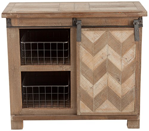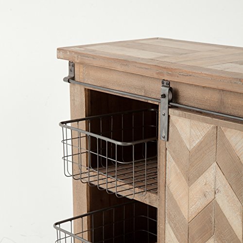 -. Feature : Includes two removable wire storage baskets / Open shelving on opposite side / Height is 31.5in / Natural finish