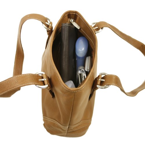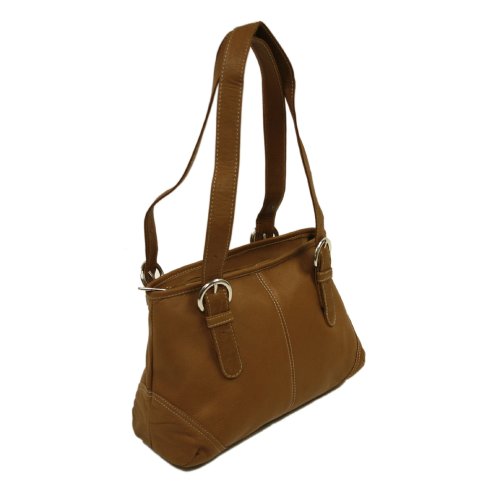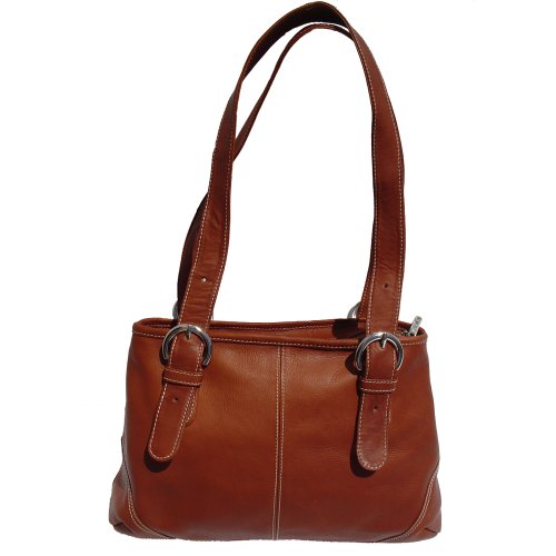 Piel Leather Medium Buckle Handbag, Saddle, One Size
