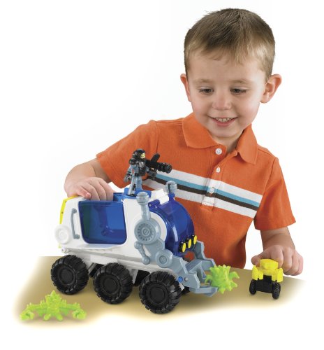 -. Feature : Includes vehicle, figure with accessories, three aliens and one robot / Turn figure - ramp flips down / Pull back handle to trap aliens in compartment / Cockpit opens and closes and astronaut fits inside / Stack up the aliens against the robot