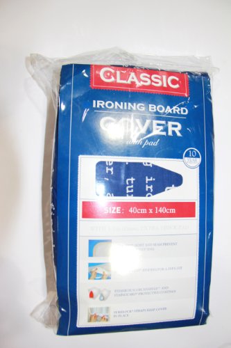 -. Binding : Kitchen -. Brand : J&J home fashion -. Color : Blue With White -. EAN : 6952143800211 -. Feature : Fits 15" x 54" Standard-size ironing board / Ultrafit skit and seam prevent cover from shifting / Stetch & fit binding for a snug fit / Surelock straps keep cover in place / 10 year warranty -. IsAutographed : 0 -. Label : J&J home fashion -. Manufacturer : J&J home fashion -. PackageQuantity : 1 -. ProductGroup : Home -. ProductTypeName : HOME -. Publisher : J&J home fashion -. Size : 13"-15" wide and 53"-54" long -. Studio : J&J home fashion -. Title : Classic Heavy Use Ironing Board Cover with Pad-Letter Blue