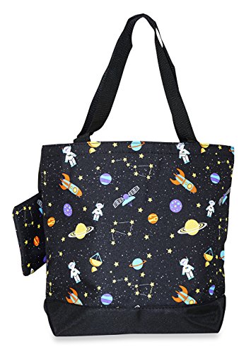 Product Description The possibilities are endless with this fabulous large tote bag. Throw it over your shoulder to take shopping or to the gym. Use it as carry on luggage for the chic jet setter or a diaper bag for the fashionable mom on the go. Designed in a fun handbag style print makes an ideal shopper tote, knitting bag or gifts for your bridesmaids! Makes a great school bag and can handle text books and binders because it's made out of durable canvas and has sturdy straps. This light weight weekender bag is lined with nylon for easy cleaning. A spacious interior pocket keeps everything you need right at your fingertips. Features a velcro top closure, and comes with a matching attached coin purse! 0