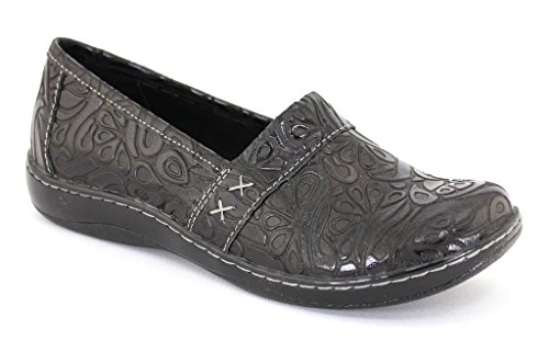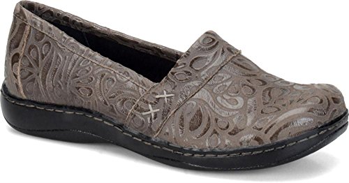 Slipon ease and comfort in the new Howell by b.o.c Fullgrain, tooled fullgrain, linen fullgrain leather, patent polyurethane or leopard polyurethane Rounded toe Stitching accents Slipon styling Cushioned insole Traction outsoleFeature