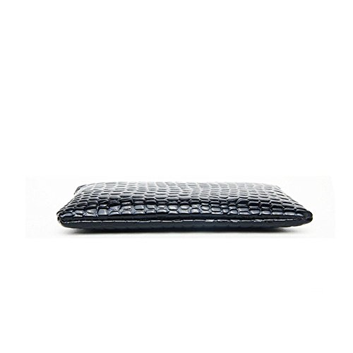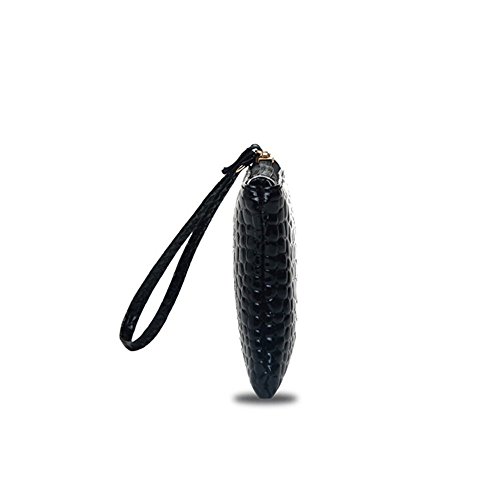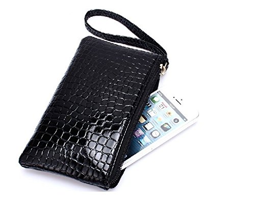 Can hold coins,cellphone,lip gloss, cards and cash.The leather wrist strap makes the clutch wallet easy to carry.