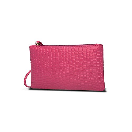 SUNYOU Women's Fashion Cute Leather Wristlet Clutch Cellphone Purse Wallet Makeup Handbag (rose red)