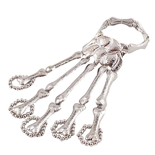 -. Title : Halloween Silver Talon Skeleton Skull Hand Finger Bone Slave Bracelet Ring Gothic Punk