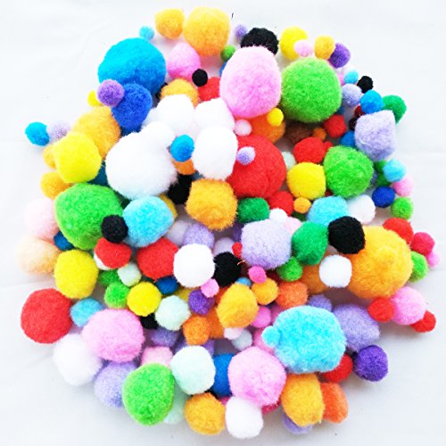 - 200 pcs fuzzy Pom-Poms in random color .Assorted sizes:8mm*50pcs, 12mm*50pcs, 17mm*40pcs, 20mm*30pcs, 26mm*20pcs, 36mm*10pcs.