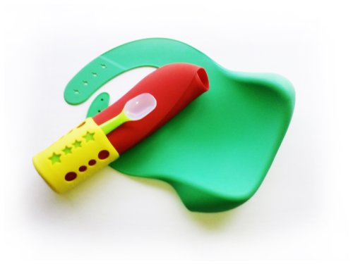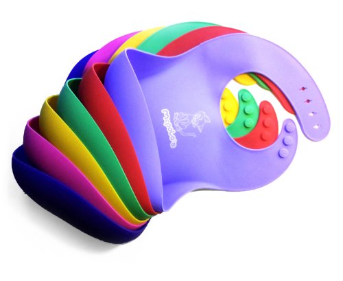 - Feature : CLEAN THE BIB, NOT THE MESS ON BABY AND THE FLOOR - Easy cleaning: No Dryer, Not even on Top Drying Rack. Just Rinse, Quick Air-Dry and Ready to Use Again. Make this positive change: Put an end to water waste and never ending bib-washing. Save our environment, your time and money. Enjoy your savings and more precious moments in baby feeding. / SMART NECKBAND - No irritating Velcro or loosening beaded clasp to deal with. No struggling with unreliable Hook-and-Loop's. No cumbersome unportable strapping system. Only plain simple, well positioned SMART BUTTONs for fitting growing babies and toddlers comfortably. "Soft-Landing" advantage - No pushing back by highchair trays. Will not choke or traumatize babies like BabyBjorn and most HPLAs (Hard-Plastic-Look-Alike) bibs do. "Childproof" - Child CANNOT get bib off without parent's assistance! / SMART POCKET - Designed to catch food crumbs and collect spills with ease. Not any button-up pocket that leaks. Not pocketful of silly faces too small and unreliable to do the job. Only no-nonsense effectve bib design based on world-class studies of ergonomics. Never get stuck on edges of tables or highchairs. Wide pocket opening never shuts even when completely wet. ... "Smart Tip" from a Cool Mom: Serve snacks in Smart Pocket to your Toddlers so they don't pick them up from the floor! / PREMIUM QUALITY. NO STIFF PLASTIC - Superior to Stiff Plastics in ALL 100% natural food-grade silicone with more spectacular colors and adorable baby animal designs all children like. Soft-to-touch, pliable, supple, odorless, stain-resistant and never deform. Fit little ones with maximum comfort. Please demanding parents with highest quality, style and stunning colors. / VERY PORTABILE - Light, flexible, easy-rollup for storage. THE ONLY BIB LIVES HAPPILY IN DIAPER BAGS. Goes where the little one goes. Reason why mom smiles when packing, every time! ... "Smart Tip" from a Short-On-Time Mom: Empty out Smart Pocket when done feeding. Roll it up with remaining mess, dirty spoon and your worries all contained!